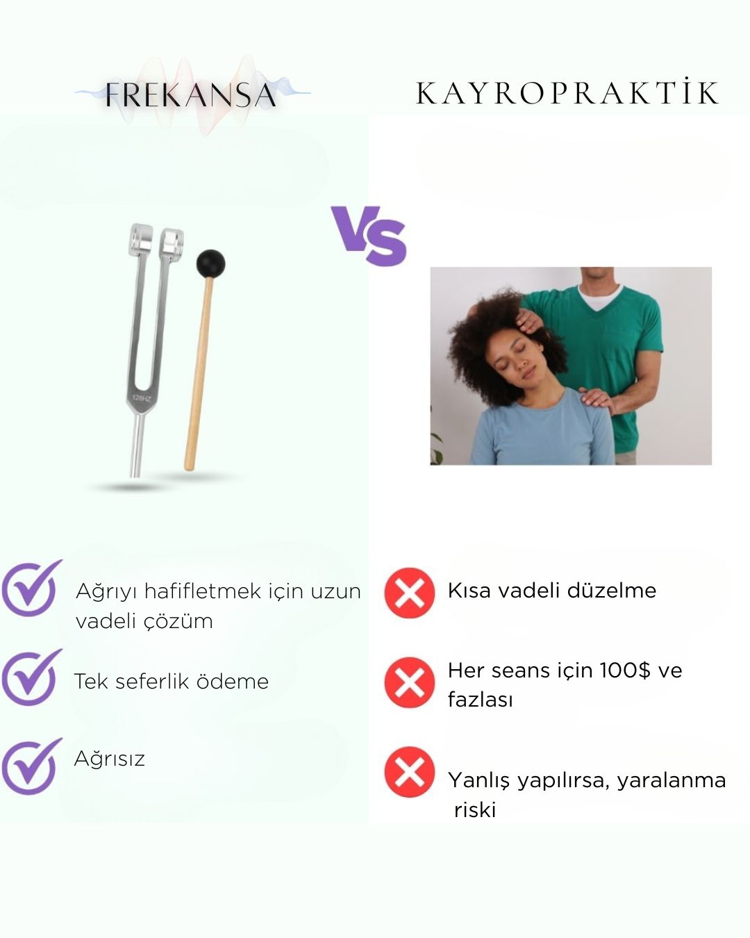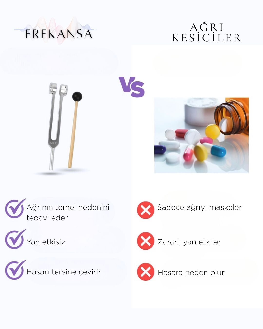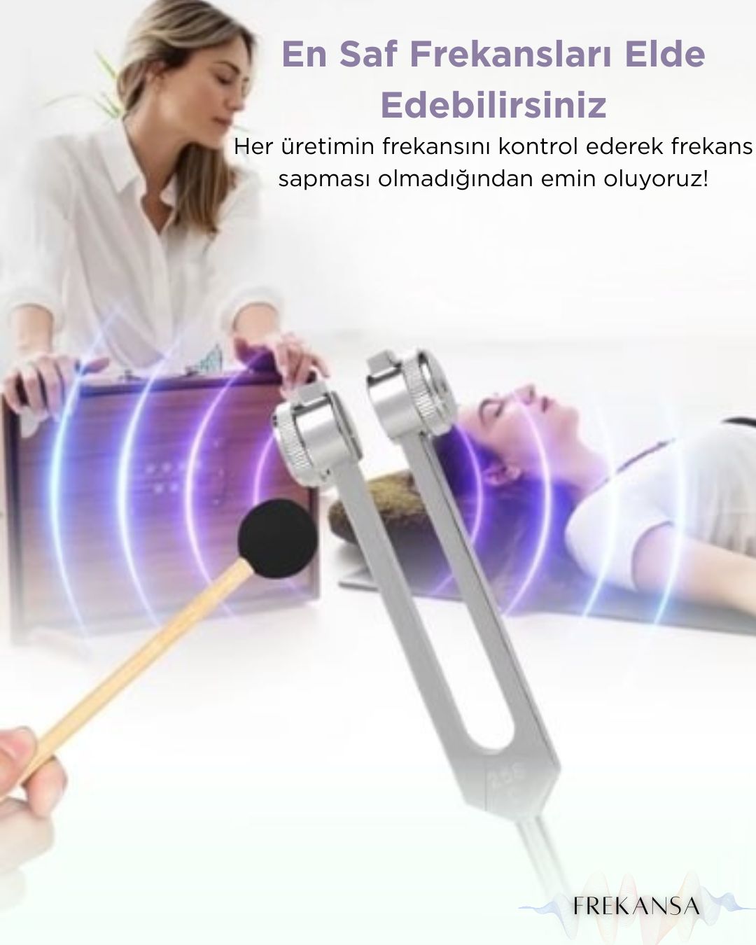 İnsan vücudu ve organları da dahil olmak üzere her nesnenin titreştiği doğal bir frekansı vardır. Stres, hastalık veya duygusal dengesizlik bu titreşimleri bozarak uyumsuzluğa yol açabilir. Bir Frekansa çatalı vurulduğunda, belirli bir frekansta saf bir ses dalgası üretir. Bu ses dalgaları, vücuttaki bozulmuş frekansları "bir araya getirebilir" veya senkronize edebilir, böylece dengeyi yeniden sağlayabilir.
